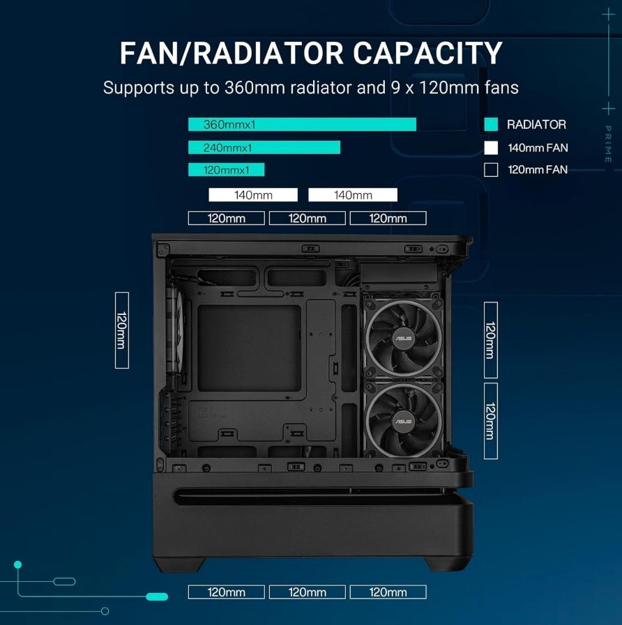 • Massive Cooling Headroom: Dominate temperatures with Top Radiator Support up to 360mm and a generous 175mm CPU cooler clearance.