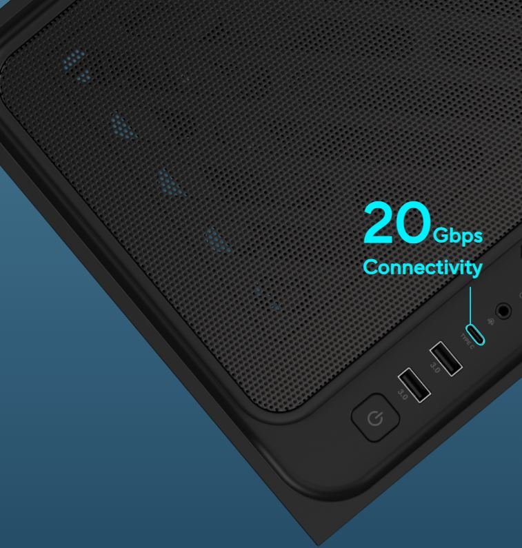 Front I/O 1x USB 3.2 Gen 2x2 Type C, 2x USB 3.2 Gen 1, Headphone/Mic