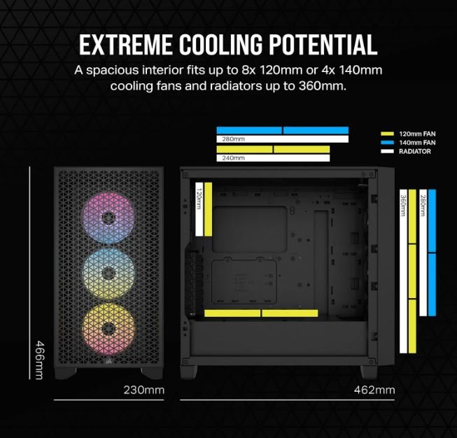 • Maximum Thermal Efficiency: The high-airflow mesh front panel ensures your CPU and GPU stay cool under pressure, while the spacious interior accommodates up to 8x 120mm fans or a 360mm radiator.