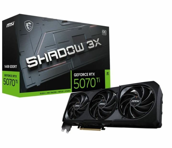 The MSI RTX 5070 Ti 16G SHADOW 3X OC delivers elite gaming performance powered by the latest Blackwell architecture. Featuring 16GB of lightning-fast GDDR7 memory and a factory-overclocked core, it provides the speed and bandwidth necessary for 4K gaming and advanced AI tasks.